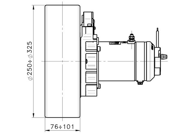 Drive wheels with a wide range of diameters, from 250 to 410 mm.