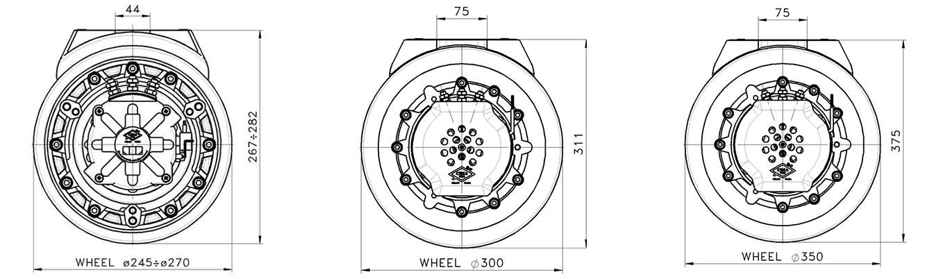 Spheroidal cast iron Ø250/260/300/350 mm. drive wheel